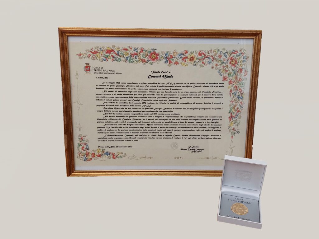Il 30 settembre 2023 questo speciale riconoscimento è stato assegnato al nostro storico Consigliere ed ex presidente Mario Comotti, tuttora impegnato nell’attività istituzionale della nostra Avis.